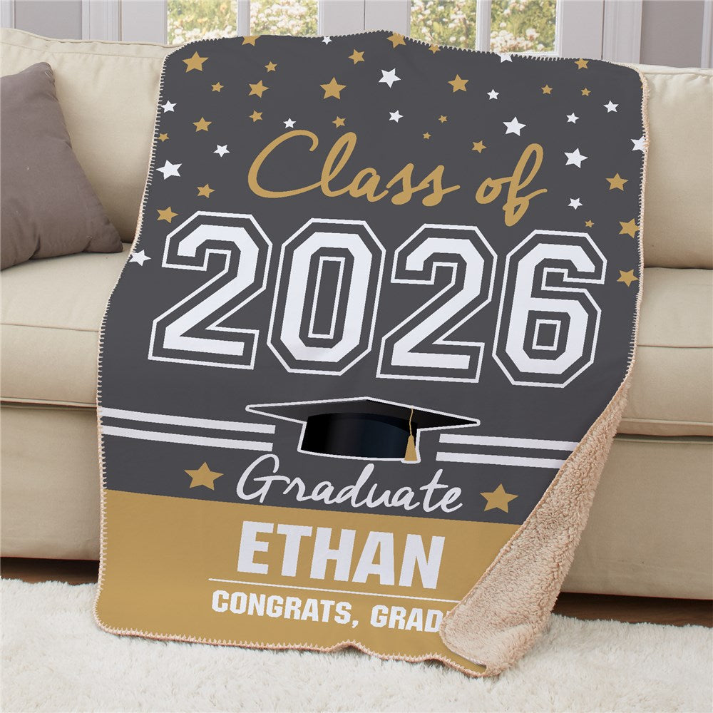 Personalized Class Of Cap and Stripes Graduation Sherpa Throw