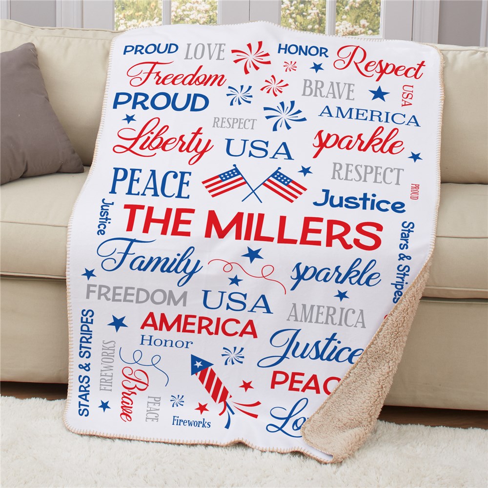 Personalized Fourth Of July Word Art Sherpa Blanket