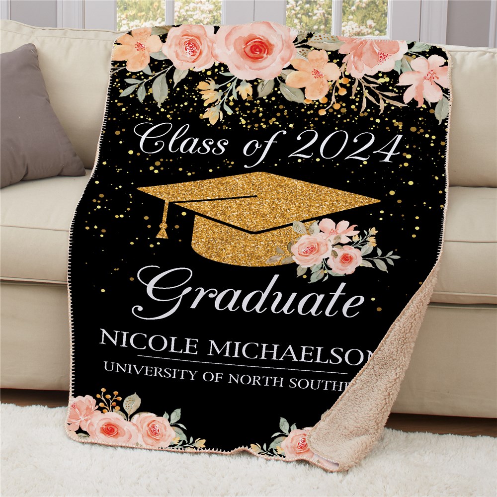 This Personalized Gold Glitter Cap with Flowers Sherpa Throw is a great way to celebrate this milestone in your graduate's... Read more