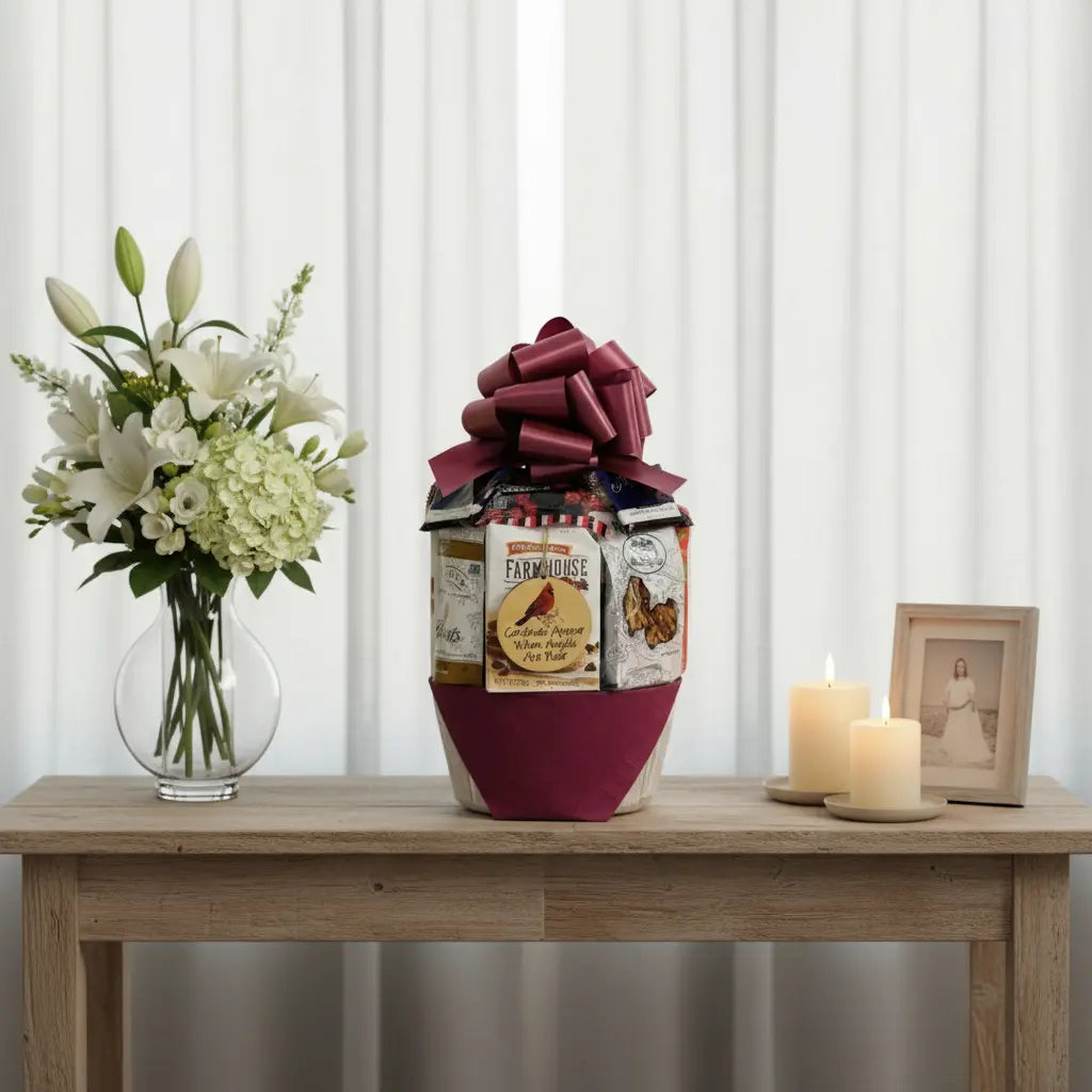 When words fall short, a thoughtful gift speaks volumes. This gourmet sympathy snack gift basket offers a warm, lasting way to express your condolences—filled with premium snacks and treats that bring comfort during life's most difficult moments. A meaningful alternative to flowers that the whole family can enjoy together.