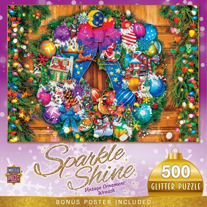 Holiday Glitter - Vintage Ornament Wreath 500 Piece Puzzle