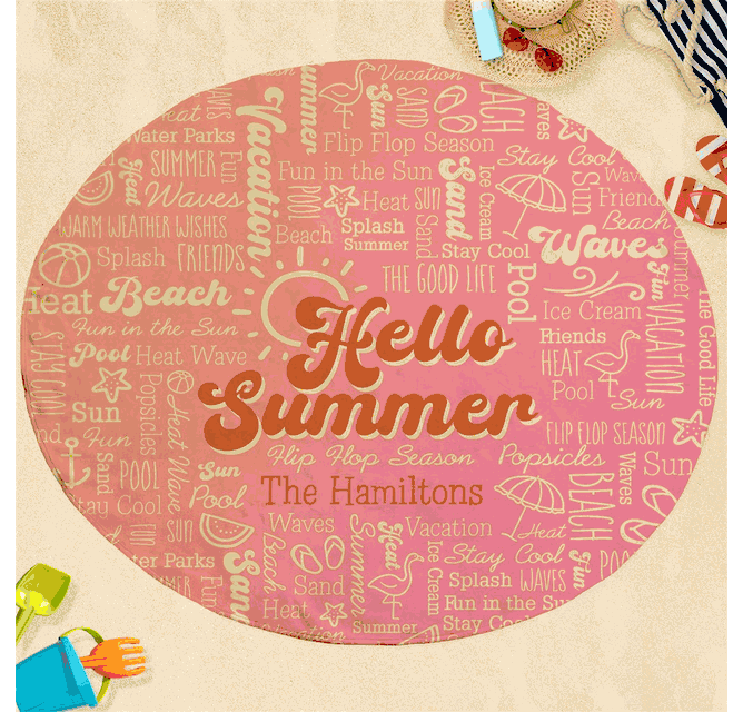 Greet the summer sun laying on this stunning Personalized Hello Summer Groovy Round Beach Towel. This soft and absorbent 60"... Read more