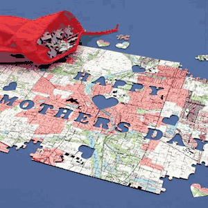 With this Personalized Mother's Day Map Puzzle, show your mom how much you love her! Spend some quality time with your mom trying to solve this 400 piece puzzle. While putting the puzzle together, you will also be recreating the map of your mother's hometown, making this puzzle experience more thoughtful and nostalgic than challenging. Once you solve the puzzle, you will reveal the secret message that says "Happy Mother's Day." In the center of this map that covers an area of 6 miles (east to west) by 4 miles (north to south), you will find your supplied address! This location will be in the shape of a heart to show your mom how much you believe in the old saying "home is where the heart is." The puzzle is digitally constructed from US Geological Survey Mapping. Made with expert craftsmanship, using a 1.5mm Millboard, the map really looks accurate! Included are a 12 1/4 x 18 1/2 inch puzzle once assembled, a red cotton bag to hold the pieces, and a pretty box the gift arrives in with a space to write a personal message on.
